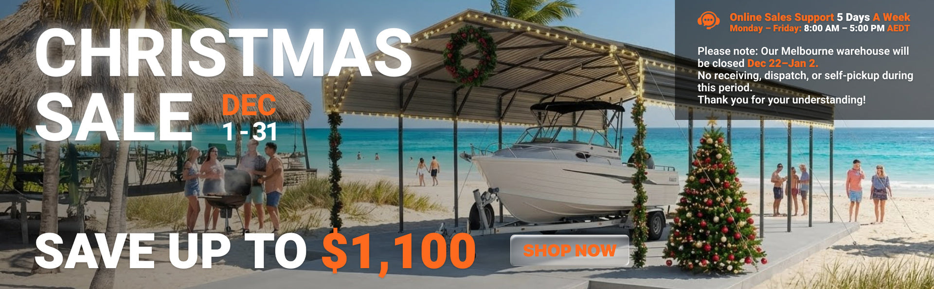 12' x 30' Metal Shed Boat Shelter, 12.3' Peak Height, 11' Clearance TMG-MSB1230