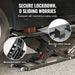 Turvallisuus on sisäänrakennettu jokaiseen senttiin: mekaaniset lukot kytkeytyvät automaattisesti, kun haluttu korkeus on saavutettu, ja kumiset kosketuslevyt estävät liukumisen turvallisen asennuksen takaamiseksi. Kätevyyden vuoksi koko järjestelmä taittuu kokoon säilytystä varten ja siinä on sisäänrakennetut kahvat ja nailonpyörät helppoa siirtämistä ja seinälle ripustamista varten.